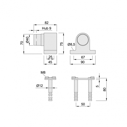 Made of aluminium, brass or stainless steel with spring-loaded buffer of rubber, black.