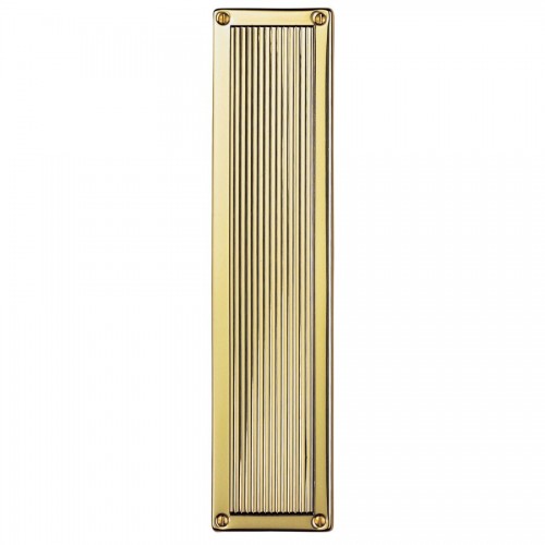 A rectangular finger plate surrounded by a slender plain border which nicely accentuates the central Queen Anne lined pattern. Suitable for domestic and commercial use.