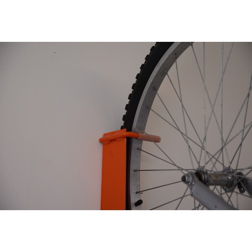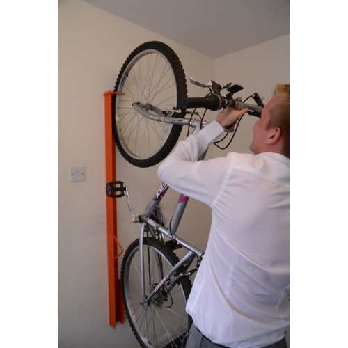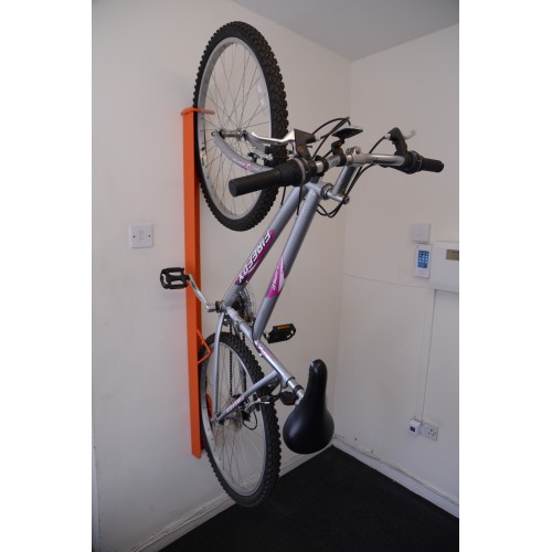 • The front wheel is supported from a rubber lined hook and the rear wheel uses a lower support to stop any sideways movement
