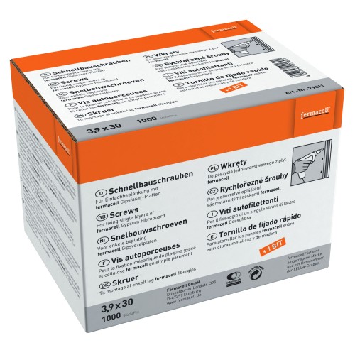 For fixing standard fermacell boards to timber or DIN standard metal frame systems. It is recommended to use 13 screws per m2 for wall applications (for each side) and 30 screws per m2 for ceiling applications.