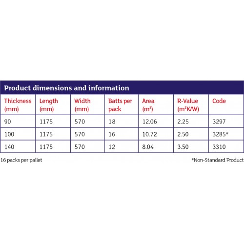 Thicknesses: 90, 100 or 140mm (Please see table in images for further information)